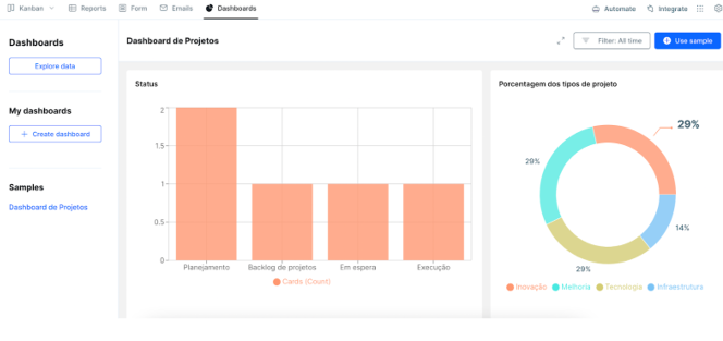 - Dashboards com indicadores em tempo real;