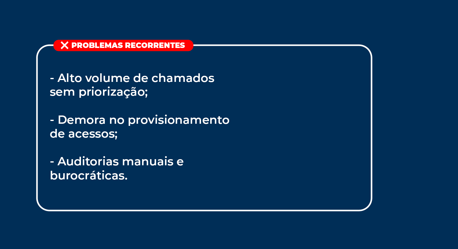 - Alinhamento entre tecnologia e operação.
